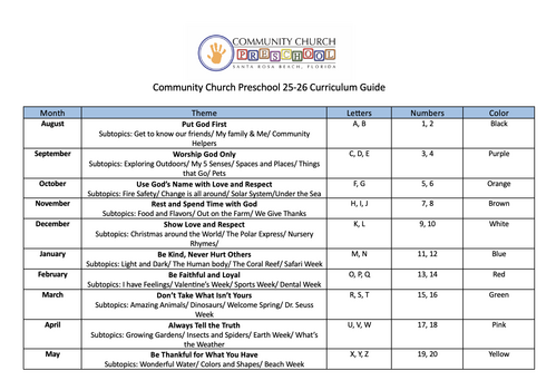 At Community Church Preschool, we are proud to offer a Faith-based and/or Christian education. Our Faith-based programs integrate spiritual development with academic excellence, providing a well-rounded education that nurtures the mind, body, and spirit of each child. We have developed a welcoming, safe environment that fosters a love of learning and spiritual growth in each child. We bring Faith into the classrooms in many ways, such as Prayer before meal times and teaching Bible stories with worship songs. Our curriculum is based off of God's Big 10 Rules, developed in-house by our highly skilled administration team to urge a connection between religion and preschool. Our Faith-based program is designed to stimulate your child's curiosity and instill strong moral values, while effectively training him or her to learn confidently. Community Church Preschool welcomes children of any denomination.