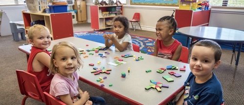 Our learning program continues to focus on fostering an early love of learning through playtime lessons that incorporate music and play. Children are learning age-appropriate scientific concepts (e.g., cause and effect), language, and vocabulary as they play with Legos, scales, measuring containers, and number and shape puzzles. Our childhood program provides great learning opportunities in a fun and nurturing environment.